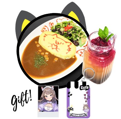 Enjoy a fun maid cafe experience with an omelet rice plate, ketchup drawing, and a bubble tea or lemonade drink!