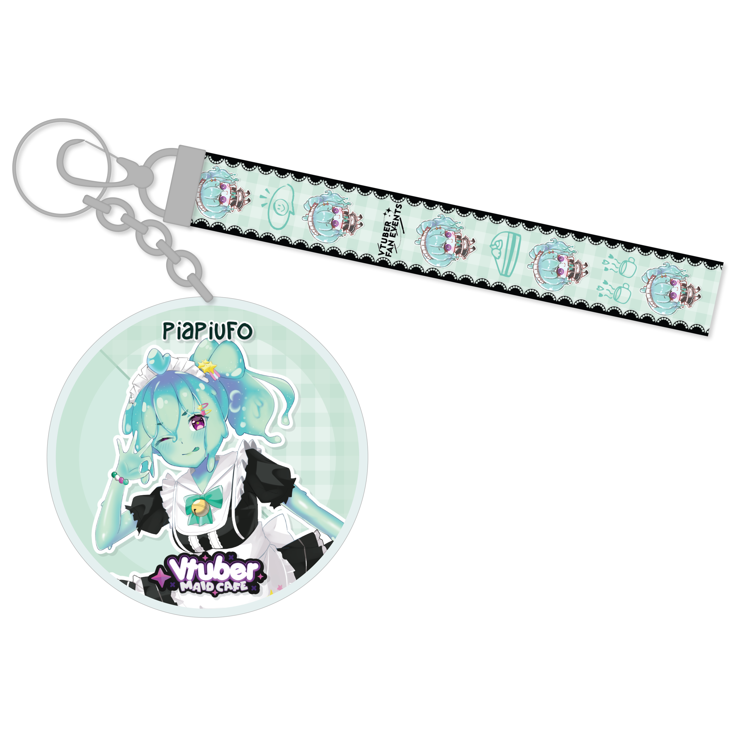 PiaPiUFO Maid Cafe Lanyard Keychain! Part of the special Vtuber Maid Cafe collaboration between Vtuber Fan Events and Arcane Maid Cafe!